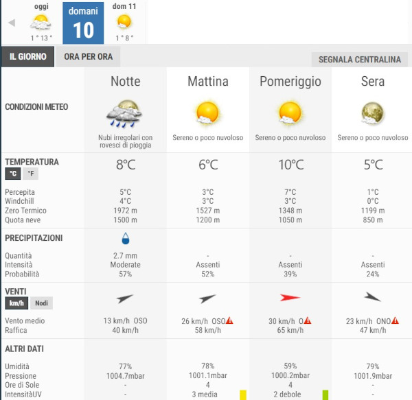 Secondo gli esperti di 3bmeteo domani, Sabato 10 Gennaio, avremo cieli in prevalenza poco nuvolosi per l’intera giornata, ma nella notte sono previste precipitazioni.