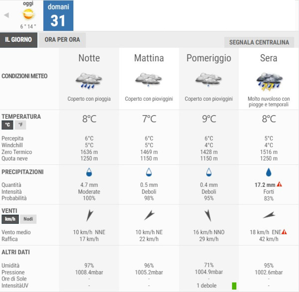 Secondo gli esperti di 3bmeteo infatti, domani 31 Marzo, avremo cieli molto nuvolosi o coperti con deboli piogge, in intensificazione dalla sera con rovesci anche a carattere temporalesco.