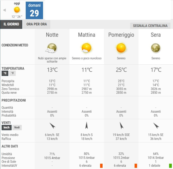 La temperatura massima registrata pare che sarà di 25°C, la minima di 11°C.