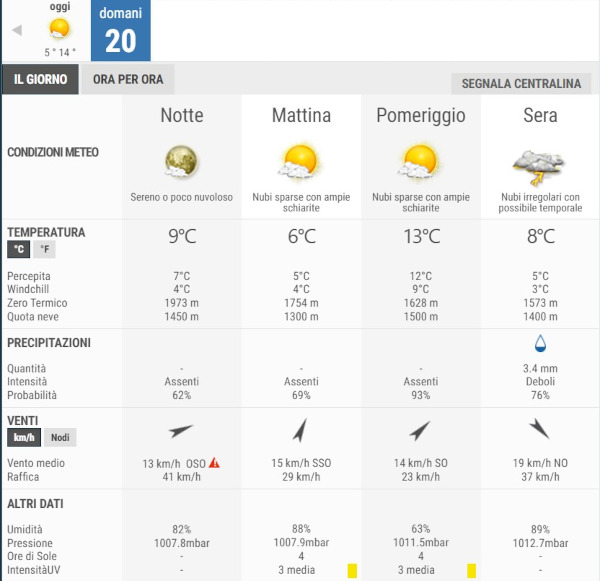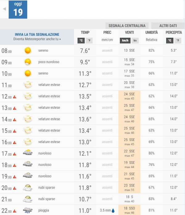 La temperatura massima registrata pare che sarà di 13°C, la minima di 6°C.