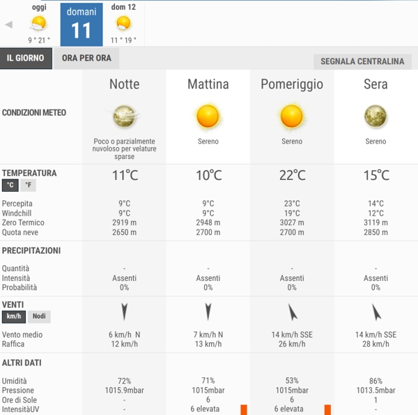 La temperatura massima registrata pare che sarà di 19°C, la minima di 11°C.