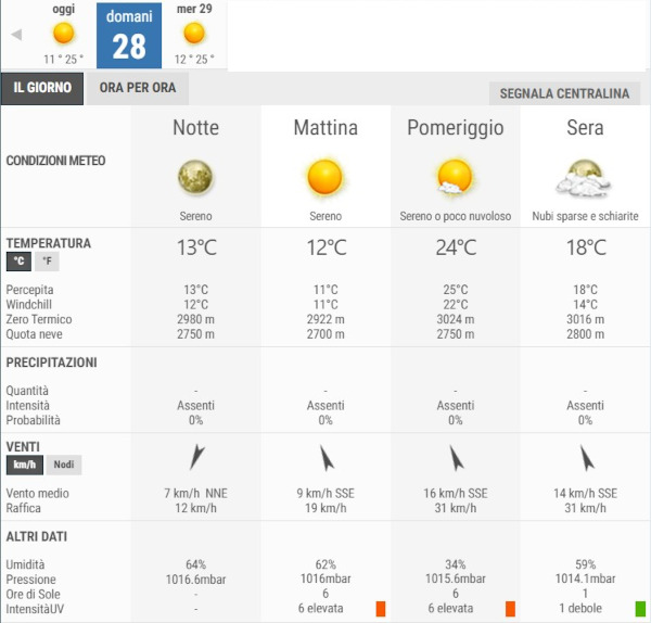 La temperatura massima registrata pare che sarà di 25°C, la minima di 12°C.
