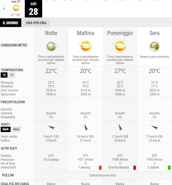 La temperatura massima registrata pare che sarà di 27°C, la minima di 20°C.