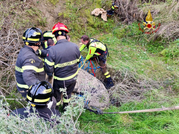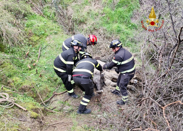 L’animale, scivolato in una scarpata, era impossibilitato a risalire autonomamente verso il piano.