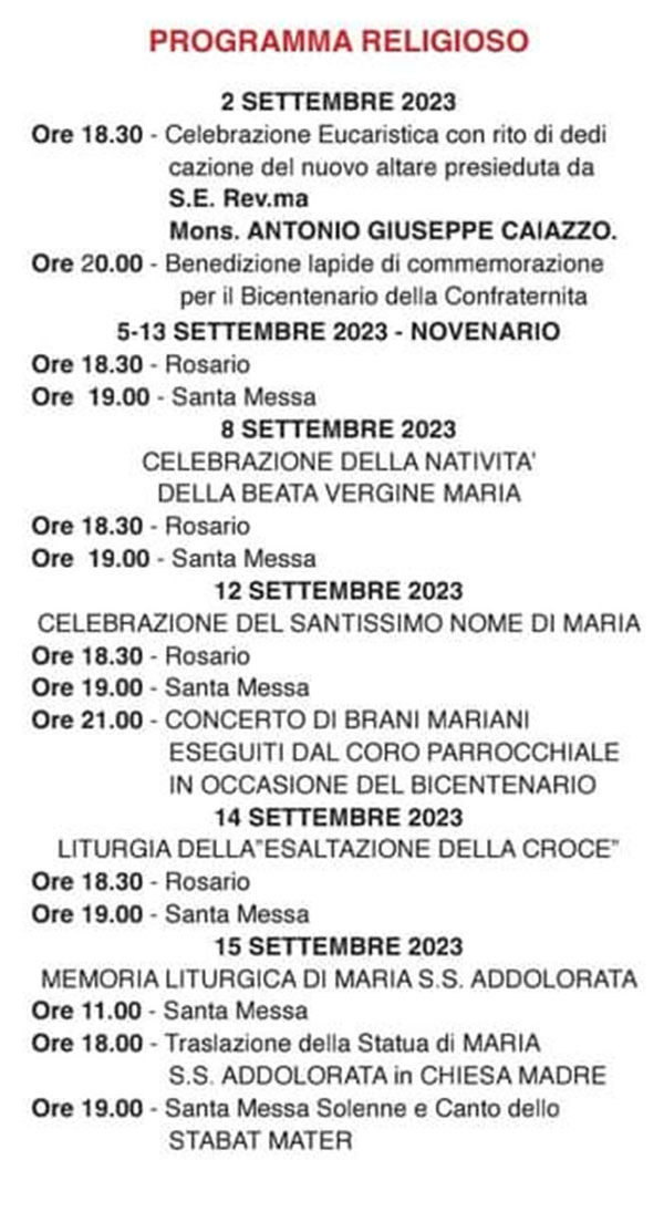 Montescaglioso si prepara a vivere la festa della Vergine Maria Addolorata nei 200 anni di fondazione della Confraternita a Lei dedicata.