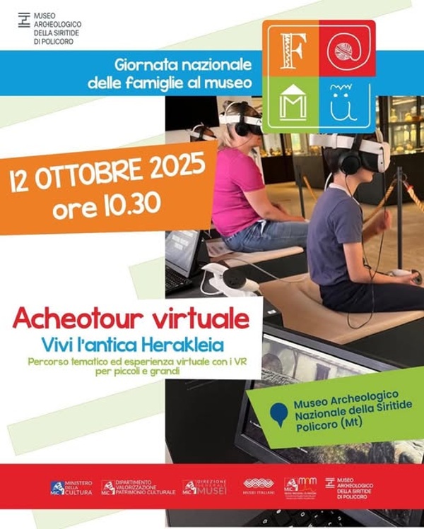 “In occasione della Giornata nazionale FAMU, il museo della Siritide vi invita all’Archeotour virtuale, un percorso tematico per vivere l’antica Herakleia che si concluderà con un viaggio virtuale grazie all’utilizzo dei VR.