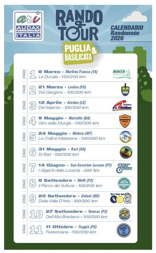 Sarà un 2026 intenso per gli amanti delle bici ed in particolare del “mondo randonnée” con protagonista la nostra stupenda terra di Basilicata e la vicina Puglia.