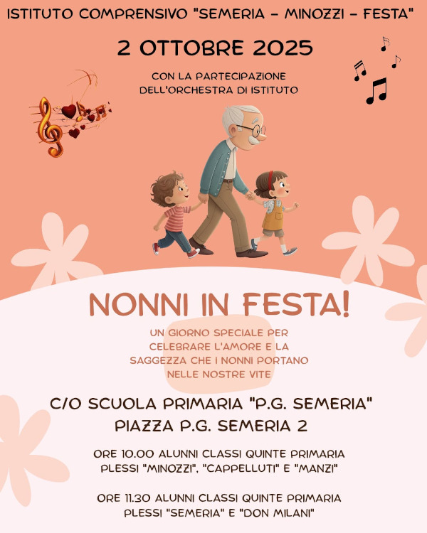 Si terrà il 2 ottobre prossimo, a suggello dell’inizio del nuovo anno scolastico 2025/26, la Festa dei Nonni presso l’Istituto Comprensivo “Semeria-Minozzi-Festa” di Matera.