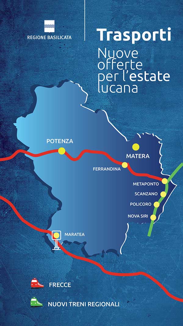 “Avendo la possibilità di impiegare risorse destinate a specifici progetti di miglioramento dei servizi di trasporto anche per finalità turistiche”, il Dipartimento regionale ad Infrastrutture e Mobilità ha chiesto a Trenitalia di programmare una serie di corse provenienti dalla Calabria con fermate nelle stazioni di Nova Siri (MT), Policoro e Scanzano (Matera), in orari il più possibile coordinati con i servizi esistenti sulla linea Potenza-Taranto, in modo da favorire l’interscambio a Metaponto.
